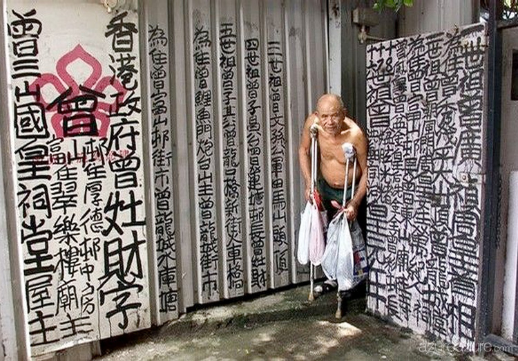 It has been reported that his family disinherited him it, arguing that he was mentally unbalanced and shameful; in the same way his wife left him, allegedly because she was fed up with his “obsession”. Tsang Tsou Choi, a poor and barely literate worker, began to mark the streets of Hong Kong with his calligraphic graffiti at the age of 35.