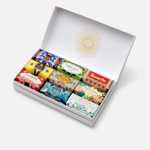 Son jabones sin fisuras, que duran más que otros pues son mucho más densos. Sus exclusivos envoltorios, diseños coloristas e inconfundible estética Art Decó les dan un toque de antigüedad. Cada jabón es cuidadosamente envuelto a mano y tiene un sello de cera.