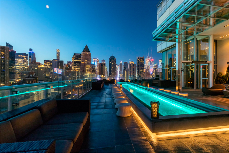 Si bien este famoso hotel queda en el área conocida como Hell’s Kitchen, su bar en la azotea está clasificado como una de los mejores de Nueva York. Ubicado en el piso 16, nos regala una impresionante vista panorámica de 360º, tiene un gran patio para fiestas y sirve algunos de los mejores tragos que haya probado. Puede también disfrutarse en días lluviosos o en pleno invierno gracias a un espacio cubierto con paredes de vidrio del piso al techo.. ■
