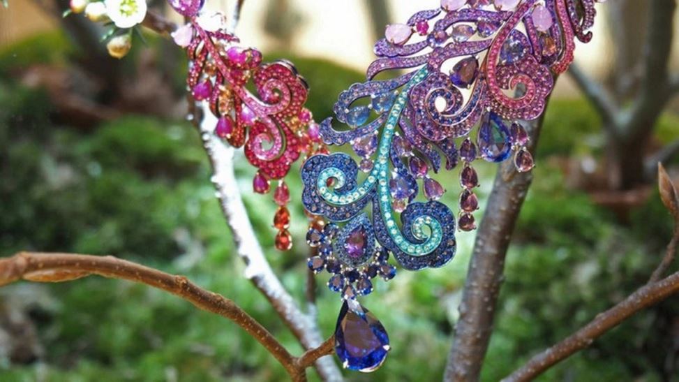Se trata de una muestra de preciosas joyas que muestran el virtuosismo y la técnica de los artesanos de Chopard, mezclando en los talleres de Ginebra piedras preciosas de colores variados con oro y titanio.