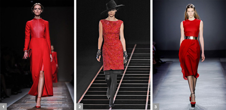 Si bien el burdeos ha gobernado las pasarelas, los rojos brillantes no han pasado desapercibidos y destacan en vestidos de tubo, faldas, abrigos y en trajes dignos de una diosa.