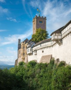 El castillo-fortaleza de Wartburg, suspendido junto a un precipicio de más de 400 metros de altura, fue el primer castillo alemán en ser declarado Patrimonio de la Humanidad por la Unesco, y es ejemplo de la culminación del período feudal en Europa central, a pesar de las reformas y adiciones hechas en siglos posteriores.