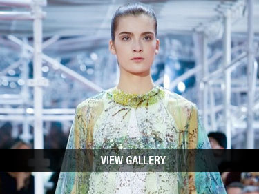 Chanel embodied a sense of sweetness and lightness in the cropped tops and floral embroidered skirts. Raf Simons at Christian Dior dipped into the archives of the esteemed house, and revived the silhouettes of the 50’s, 60’s and 70’s, adding his own twist of crystal beading, floral imprinted plastic raincoats, and full-skirted embellished ensembles. Giambattista Valli and Valentino also called upon the handiwork of Mother Nature, in their dark floral and tree motifs, while Giorgio Armani Prive exhibited a quieter sense of nature with a meditation on bamboo.