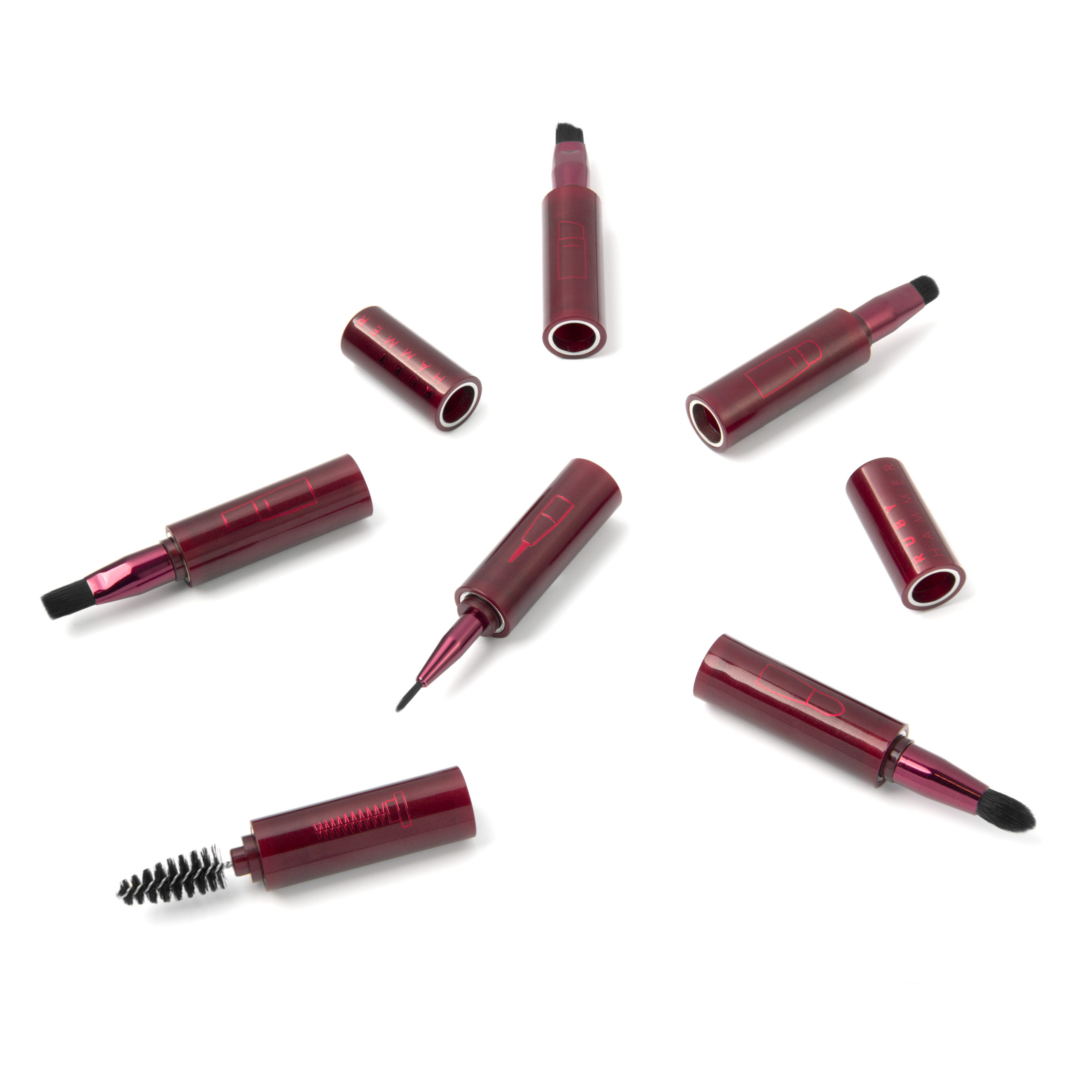 Ruby has a whole array of brushes and tools as a pro artist but wanted something that she could keep in her bag, on her desk, or take with her when traveling. The MAGNETIC BRUSH SETS are minimalistic three-piece sets featuring angled, crease, smudge brushes or fine liner, spoolie, and square-tipped brushes. All suitable for liquid, cream, gel and powder formulations, designed to refine, define, line, groom and blend; from applying concealer to finessing a smoky eye, these sets are up to the task.
