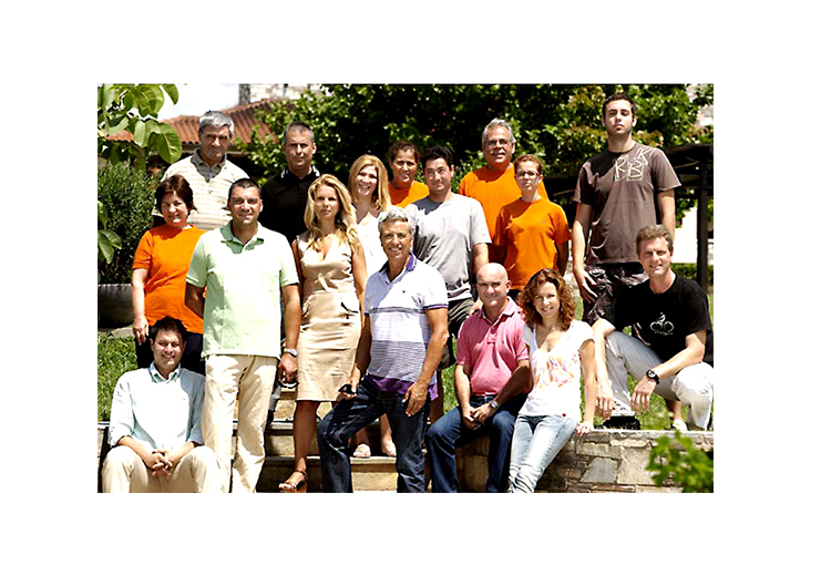 Below: Vangelis Gerovassiliou, his wife Sonia, and the rest of the team.