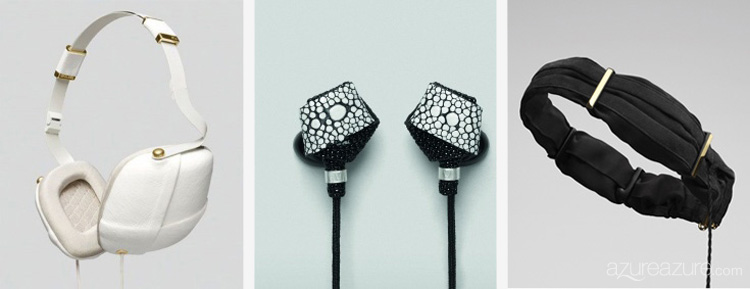 The Bight earphones fit snugly in your inner ear, revealing to any passerby nothing more than the leather covers and gold-plated accents that comprise these little “gems”. For a more discreet look that is still dazzlingly fashionable, the Twine Wrap model appears as a headband made of silk-satin and chiffon blends that wraps around your head with the unobtrusive headphones embedded in the design.