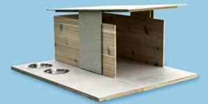 The house is designed for dogs under 50 pounds. If your pets exceed this weight, they will not readily conform to the internal dimensions. A Puphaus can be a wonderful Christmas gift for that loyal companion that brings love and joy to our lives, and at the same time it can be a striking piece of furniture in the garden. The price of the Puphaus is $990. ■