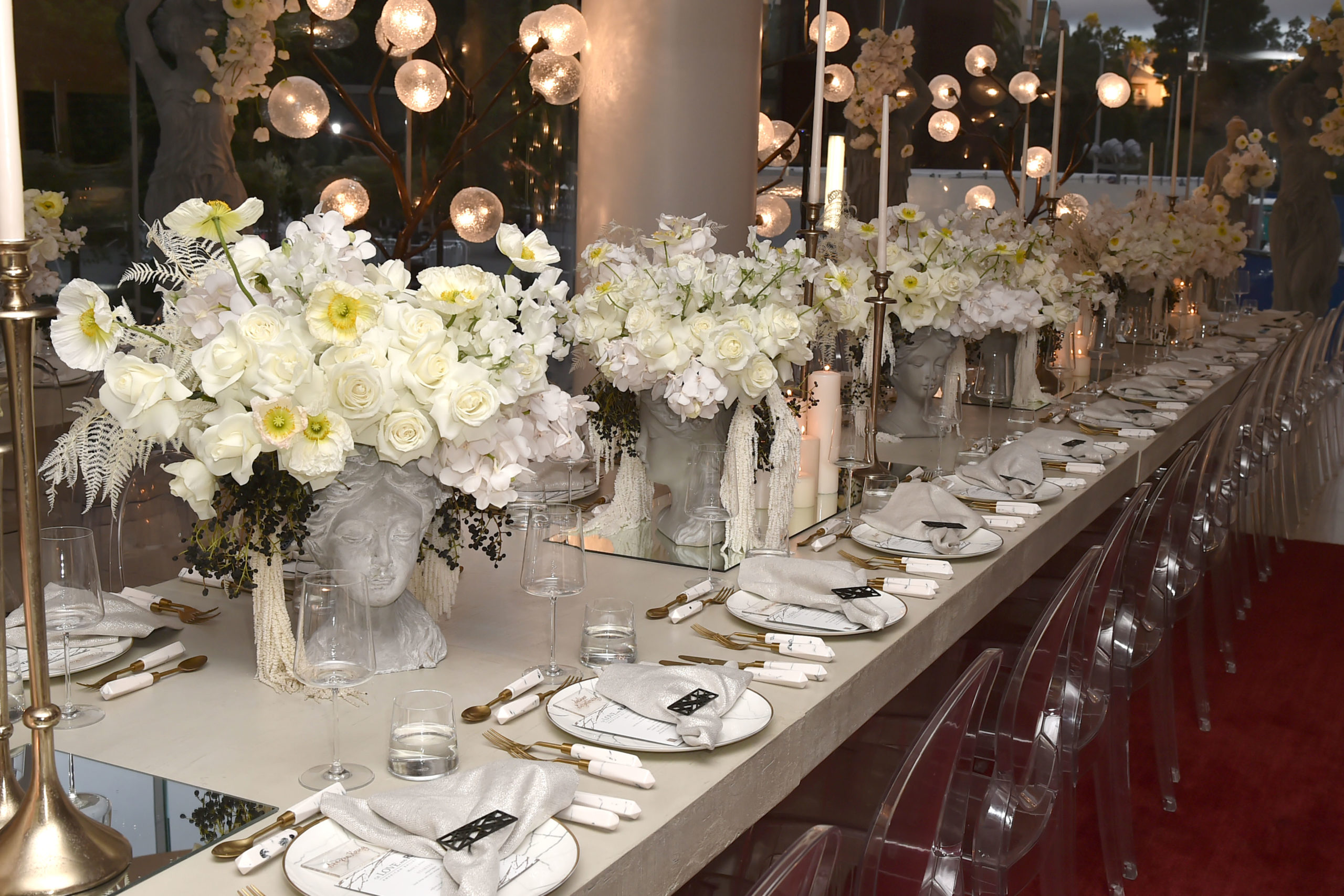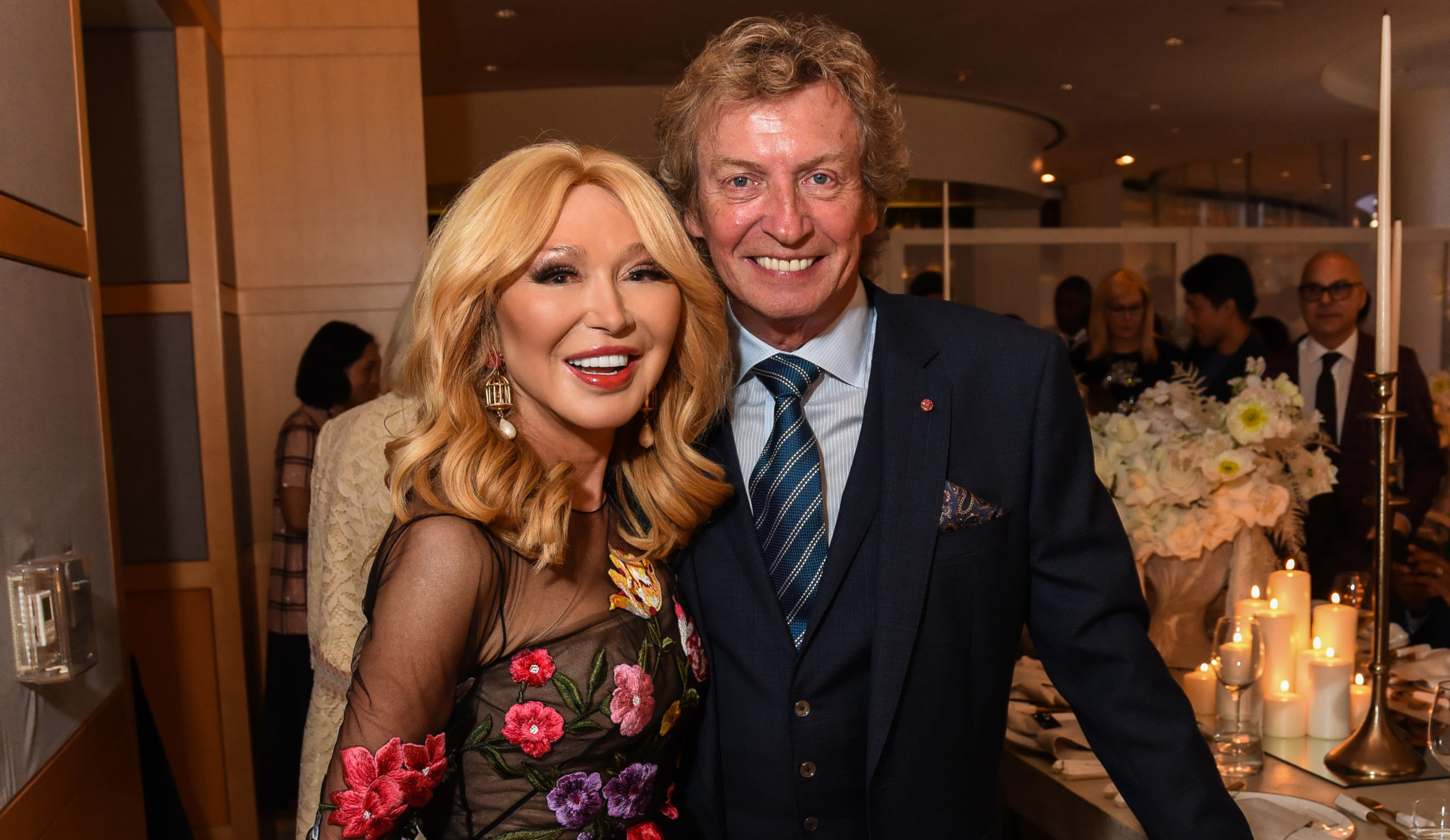 Elizabeth Segerstrom and South Coast Plaza in Costa Mesa, California, hosted a private dinner to celebrate the new production of Russian-American choreographer and former American Ballet Theater (ABT) dancer Alexei Ratmansky. Titled ‘Of Love and Rage,’ the show premiered at the Segerstrom Center for the Arts in Costa Mesa, in Orange County, California. Thousands of white flowers, Petrossian caviar, and Dom Pérignon champagne greeted guests on their arrival. Mrs. Segerstrom, dressed in an Oscar de la Renta gown embroidered with flowers, stood between Kevin McKenzie and Alexei Ratmansky during cocktails.