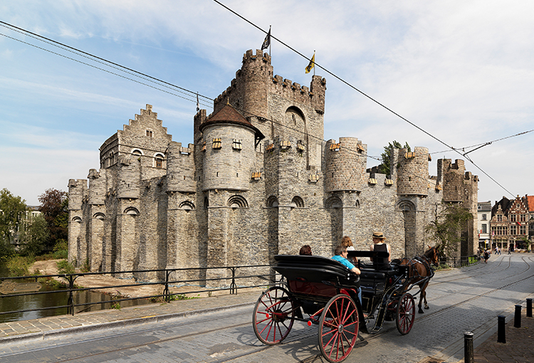 A horse-drawn carriage ride by the Gravensteen castle
